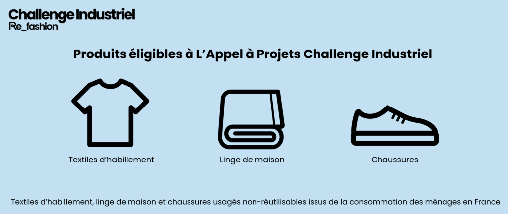 Le Challenge Industriel a pour vocation d’accélérer le recyclage des textiles et chaussures en France et en Europe, grâce à l’industrialisation de technologies innovantes et de débouchés industriels.