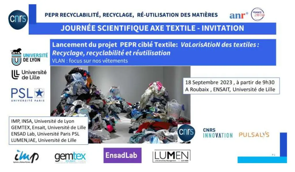 Le 18 septembre à l’ensait, à l’occasion du lancement du grand projet national de recherche dédié au recyclage , réutilisation et recyclabilité des matières, EuraMaterials va présenter l’économie circulaire textile des hauts de France, entreprises, projets,, réseaux, perspectives